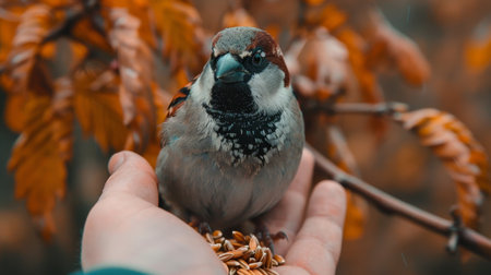 beauty of a sparrow perched on a man's hand