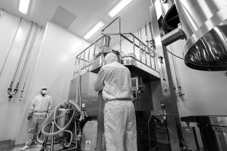 Stock photo of unrecognized scientist filling test tubes in the laboratory.