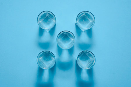 Glasses of clean water on color background