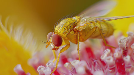 xtreme Close-up Set Detailing the Red-Eyed Head and Mottled, Bristly Posterior Abdomen of a Fly