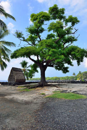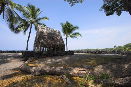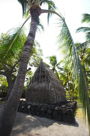 A hut on the beach at Pu'uhonua o Honaunau known as the Place of Refuge on the Big Island of Hawaii