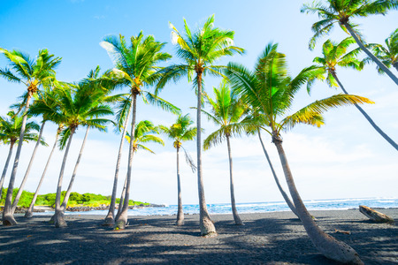 Palm trees on an idyllic beach on Big Island, Hawaii, USA.