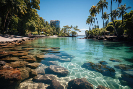 Urban Beach in Brisbane, Australia, with skyscrapers in the background., generative AI