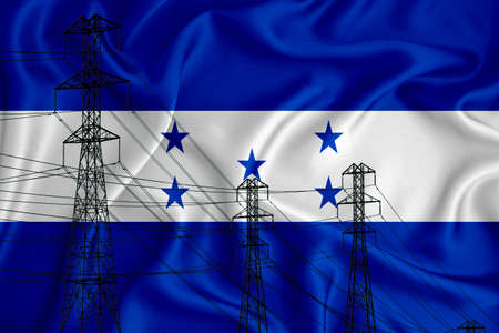 Honduras flag in the background Conceptual illustration and silhouette of a high voltage power line in the foreground a symbol of the upcoming energy crisis. 3d rendering