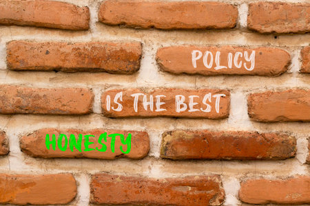 Honesty is the best political symbol. Concept words Honesty is the best policy on beautiful brick wall. Beautiful brick wall background. Business honesty is the best policy concept. Copy space.