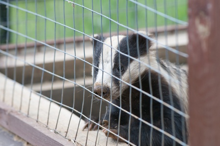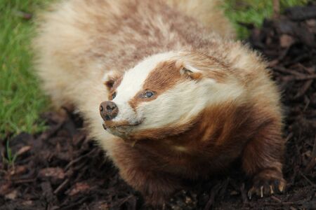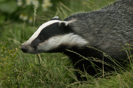 Badger, Meles meles, single animal head shot, Captive, July 2011