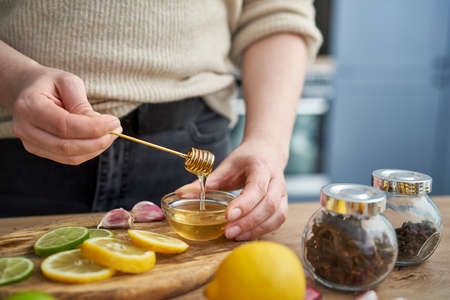 Unrecognizable person preparing natural ingredients for immunology