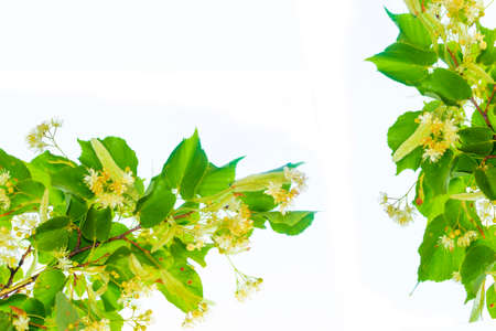 Nature. Fresh flowers and leaves of linden isolated on white background