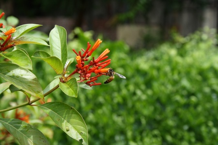 Beautiful blooming firecracker flowers in the garden