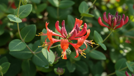 closeup to colorful honeysuckle flowers