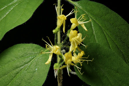 Fly Honeysuckle (Lonicera xylosteum). Inflorescence Closeup