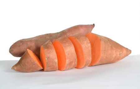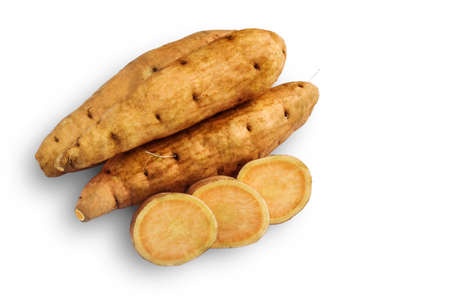 American food. Sweet potatoes isolated on white background. Close-up, copy space.