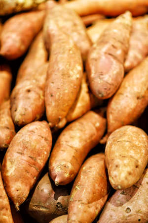 Sweet potato Vegetables, Creative background design with food theme, focus on the pile of fresh Sweet potato Vegetables