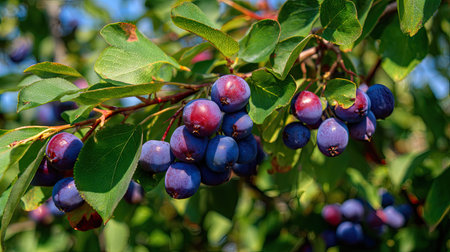 Vibrant and Fresh Blue Berries Found on Lush Green Foliage Under the Summer Sunshine