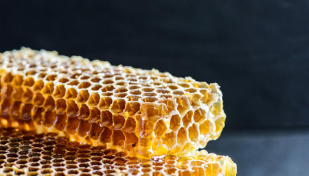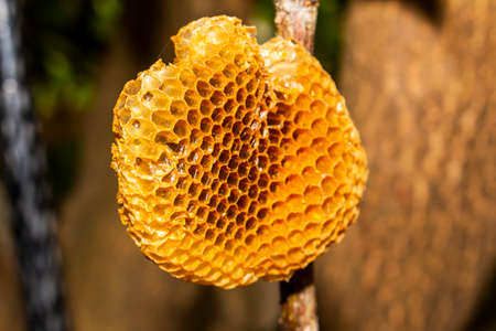 Close up view of the sweet honeycombs made from organic honey