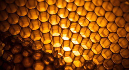 honeycomb with sunlight glinting, created with generative ai