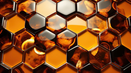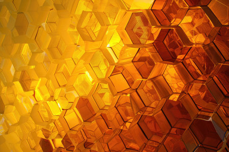 highly symmetrical hexagonal yellow honeycombs with honey