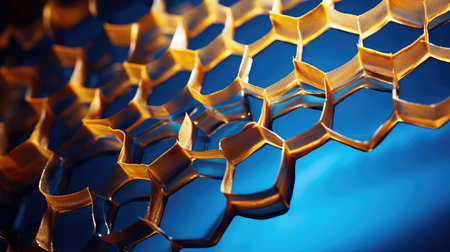 AI Generated. Abstract Yellow Honeycomb Texture on Bright Blue Background
