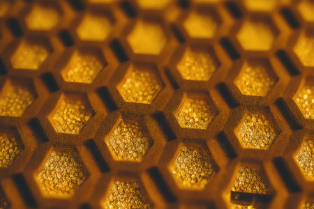 Intricate Patterns of Golden Honeycomb. AI Generated.