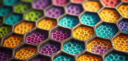Colorful honeycomb pattern. 3d rendering, 3d illustration.