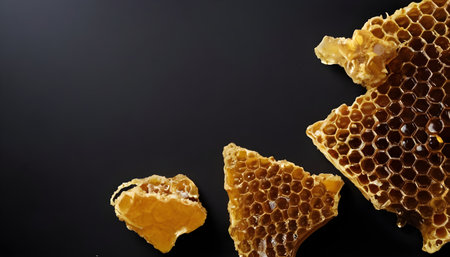 Honeycombs with honey on a black background. Selective focus.