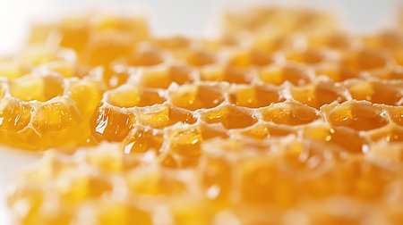 Golden Honeycomb Surface Texture of Beeswax Natural Honey with Sweet and Decorative Qualities