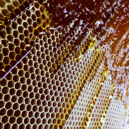Honeycombs with honey, macro shot, shallow DOF