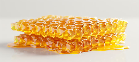 An AI generated illustration of honey dipping on a honeycomb