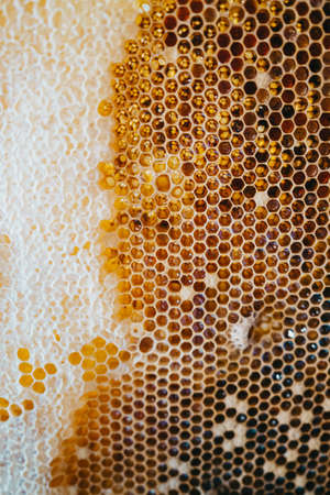 Close up of honeycomb texture background. Macro photography of honeycombs.