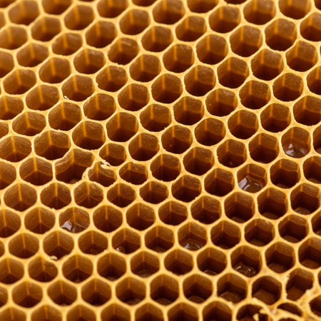 Detailed Close-Up of Golden Honeycomb Pattern Showcasing Raw Honey Cell Structure and Texture