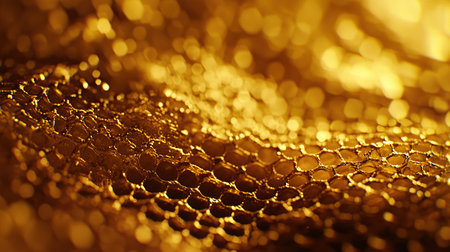 Stunning golden honeycomb structure with intricate textures and glimmers of light; perfect for abstract backgrounds or nature-themed designs that inspire warmth and elegance.