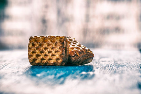 unfinished honey making in honeycombs street food in thailand. with vintage filter