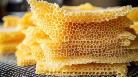 Close-up of Golden Textured Honeycomb, Organic Cells from Honeybee for Healthy Sweetness Delight