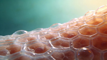 Abstract honeycomb macro texture. Agricultural or industrial layout. Aesthetic trend. Generative AI