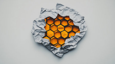 Depict a crumpled paper, the structure of a honeycomb within the folds, displaying its beauty on white --chaos 30 --ar 16:9 --v 6.1 Job ID: c3e67168-250c-4933-872a-d9d9b5869484