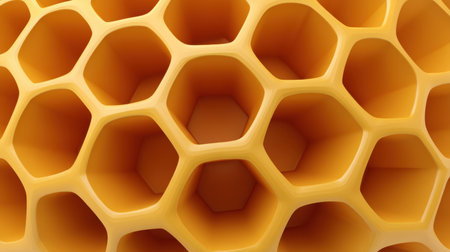 This image showcases a close-up view of a golden honeycomb structure featuring smooth hexagonal patterns. The vibrant color and detailed texture highlight the beauty of this natural formation, evoking feelings of freshness and organic life.