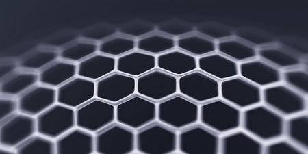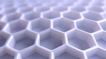 Abstract close-up of a hexagonal pattern showcasing intricate geometric shapes, with a smooth gradient background enhancing the modern design and visual appeal of the structure