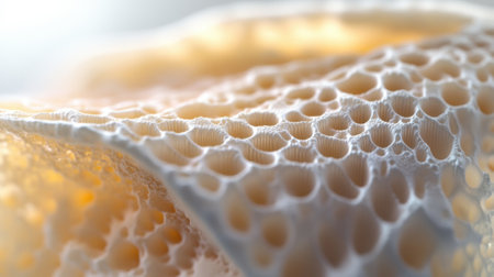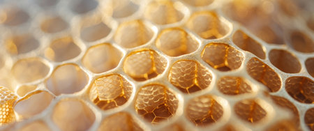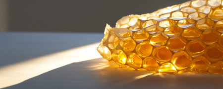 Honeycomb illuminated by soft morning light, natural sweetness and texture concept