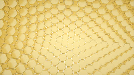 3d illustration of a yellow honeycomb monochrome honeycomb for honey. Pattern of simple geometric hexagonal shapes, mosaic background. Bee honeycomb concept, Beehive