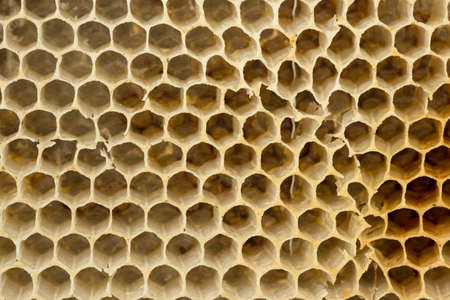 Yellow empty honeycomb close up. The focus on the background