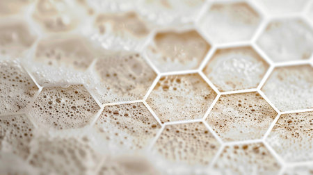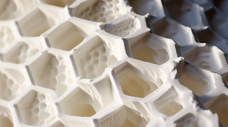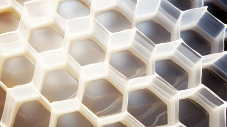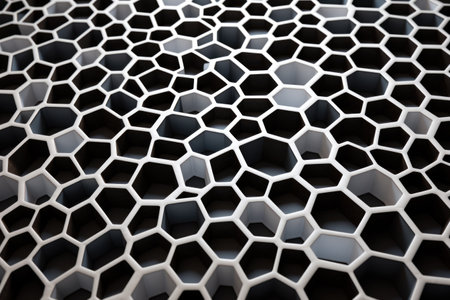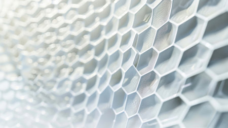 This close-up image showcases a white honeycomb pattern on a smooth plastic surface, embodying modern design aesthetics with its unique geometric shapes.