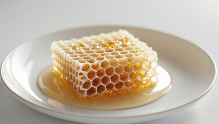AI Generated. Honeycomb on white plate delicious honey sweet treat