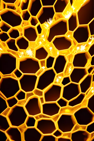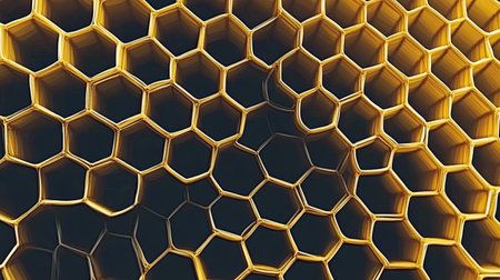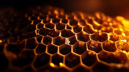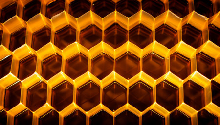 Stunning golden honeycomb structure with intricate textures and glimmers of light; perfect for abstract backgrounds or nature-themed designs that inspire warmth and elegance.