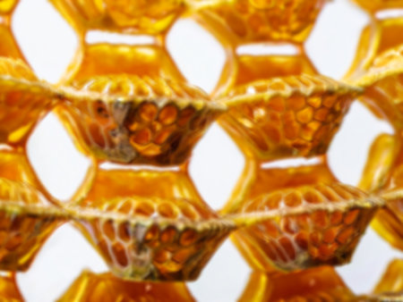 Close-up of Golden Textured Honeycomb, Organic Cells from Honeybee for Healthy Sweetness Delight