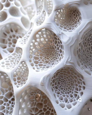 3 Intricate 3D printed fractal structure in plastic material closeup