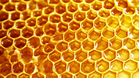 Golden Honeycomb Surface Texture of Beeswax Natural Honey with Sweet and Decorative Qualities