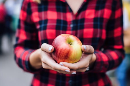 cropped shot of a woman holding an apple at the farmers market, created with generative ai