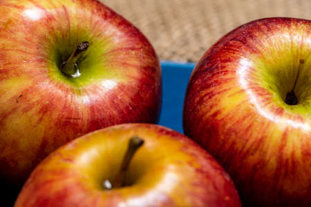 A few ripe apples, a close-up shot. Macro photo of fruits.