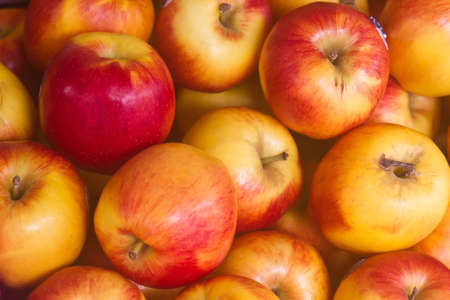 harvested yellow and red ripe apples of the new crop