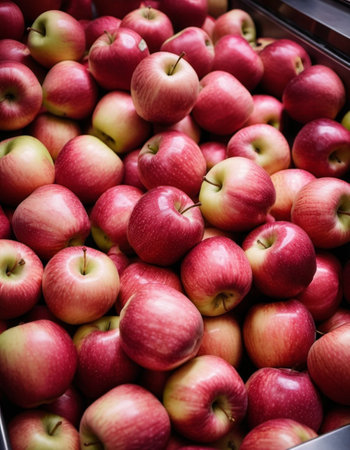 Red apples fruit stack on top of each other, taken indoor